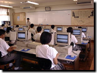 | 当然のことながら、生徒一人一台のパソコンがあります。 授業はもちろんワープロ部でも活用しています。 |