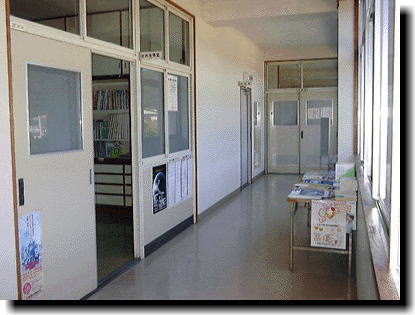 進路指導室の入り口です。部屋の前にも資料展示をしています。