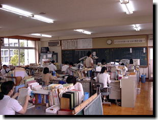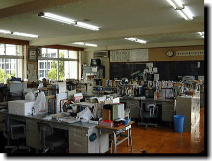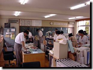 職員室では教員約20名が生徒のためにと日々頑張っています。