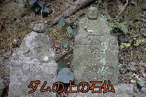 そして、まず二名津からも見える砂防ダムに登りました。すると、写真のような石仏がありました。そして、ダムの上から二名津の街をながめて、いよいよ平家谷の奥深くへ入っていくのだなあと、涙を流しました。もしかするともうこの街に戻ってこれないかもしれません。(ちょっとおおげさ?)