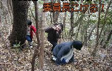 私たちがそうやって恐怖と闘っているとき、Y先生は、黙々と先に進もうと登りはじめました。H内さんが「最後の一枚を撮っておこう」と言うので,M部くんはY先生の一枚を取りましたが、私たちもさらに登らなくてはいけないので、最後の一枚でも何でもなく、ただ小さくなったY先生の姿を撮っただけだした。途中写真のように、傾斜のきつい坂を転げながらもぐんぐん登っていきました。