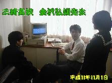 私達は三崎高校の金沢先生が、西宇和郡の環境ホルモンについて研究をされていると聞いたので、三崎高校にいって直接このことについて聞きました。この写真がそのときの様子です。