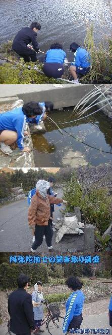 阿弥陀池は、井野浦にある大きな池で、私達はそこで写真のように生き物を探したり水の様子を観察したりしました。