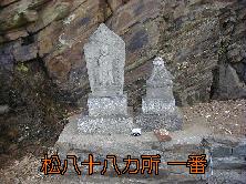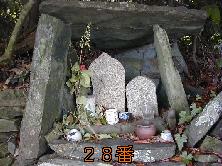 明神からの道路を横切り、さらに人家のある山道を登っていくと、石碑がありましたが、これは八十八ヶ所とは関係ないようです。そして、松の上を通る道路にでます。ここには24番があり、少し道路を下って山道を登っていきます。