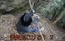 このようなすごい昔話の残るはちまき岩ですが、捜索隊は一通りはちまき岩を調べた後は、それどころじゃないんだといった感じで、転がるように下山しました。特に写真のように委員長はこけまくっていました。途中で獣のフンのようなものもありました。もしかしたらこの兵頭の話に出てくる、恐ろしい猫の子孫のものなんでしょうか。さらに、井戸も発見。行きにもあったのに・・・どうしてこんな所に井戸があるのでしょうね。また貞子が関係してるのでしょうか。